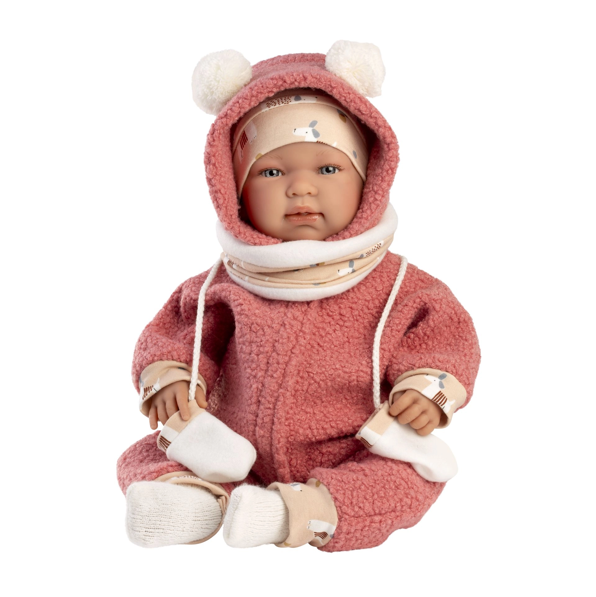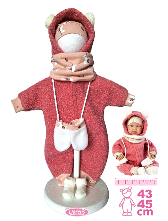 Stílusos, 5 részes babaruha szett New Born babákhoz a Llorens márkától, 43–45 cm méretben. Spanyolországban készült kézműves gyártás, minőségi kivitelezéssel és részletgazdag megoldásokkal. Praktikus csomagolás vállfával a könnyű tárolásért. 3 éves kortól ajánlott.