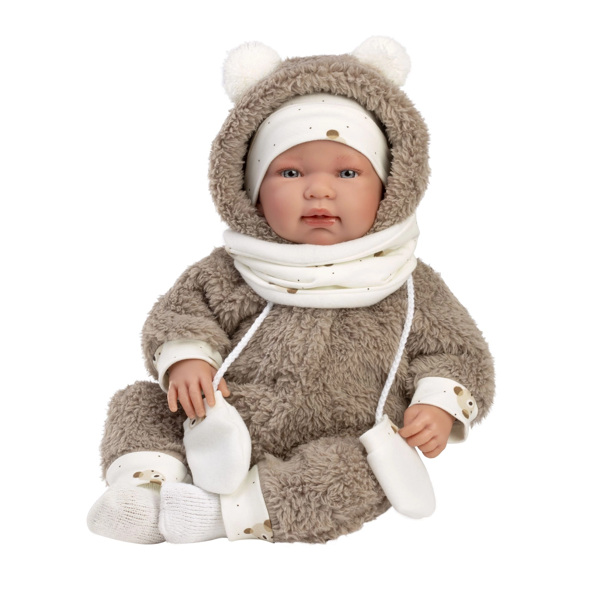 Minden darab gondosan, kézzel készül Spanyolországban minőségi, kellemes tapintású, formatartó anyagokból. Az univerzális 43–45 cm-es méretnek köszönhetően a ruhák a legtöbb ebbe a kategóriába tartozó babára illenek. A praktikus, fóliás csomagolás vállfával megkönnyíti a szállítást és a tárolást.