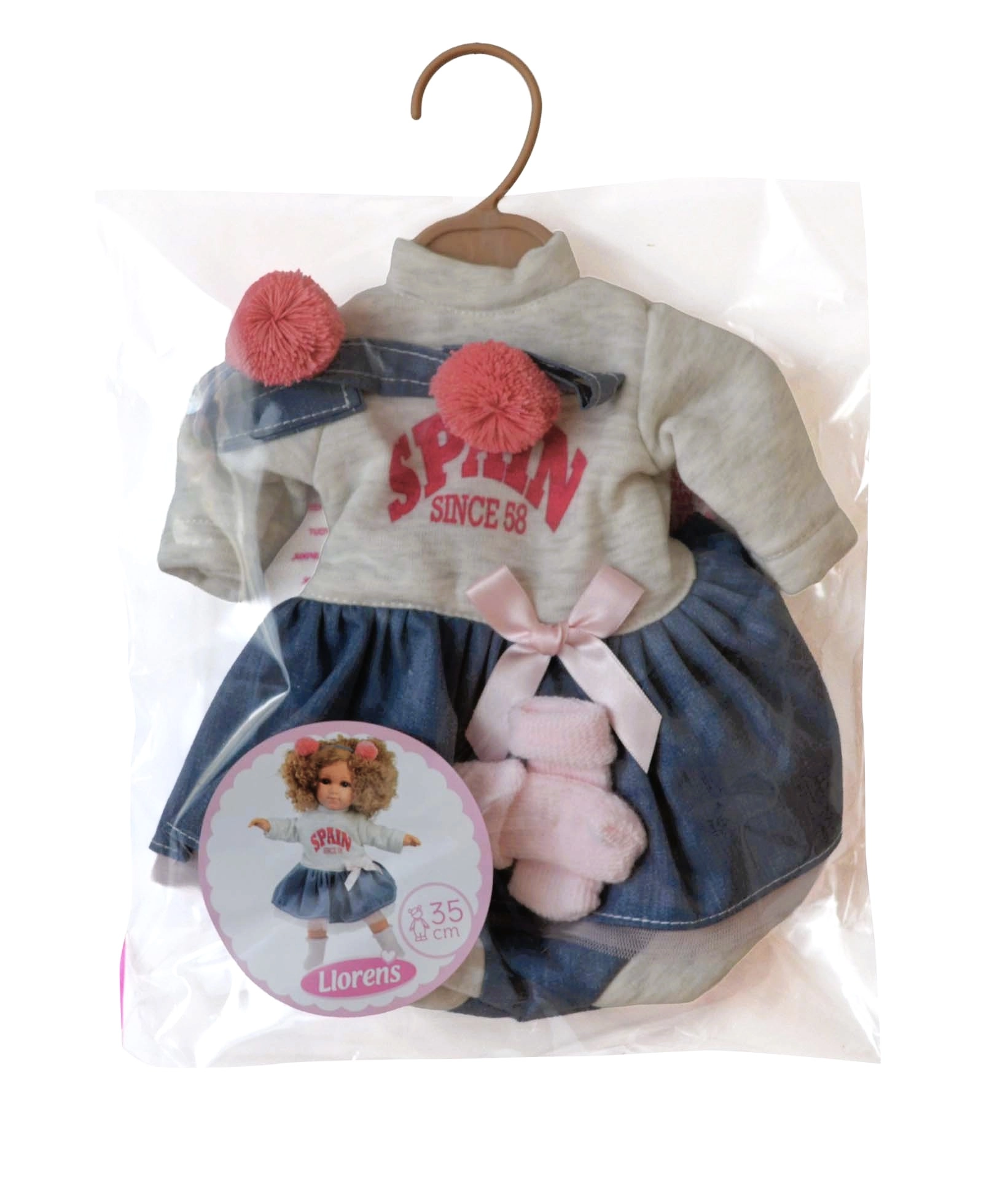 A szett kifejezetten a 35 cm-es Llorens babákra készült, így a ruhák jól illeszkednek és a kis kezekkel is könnyen feladhatók.