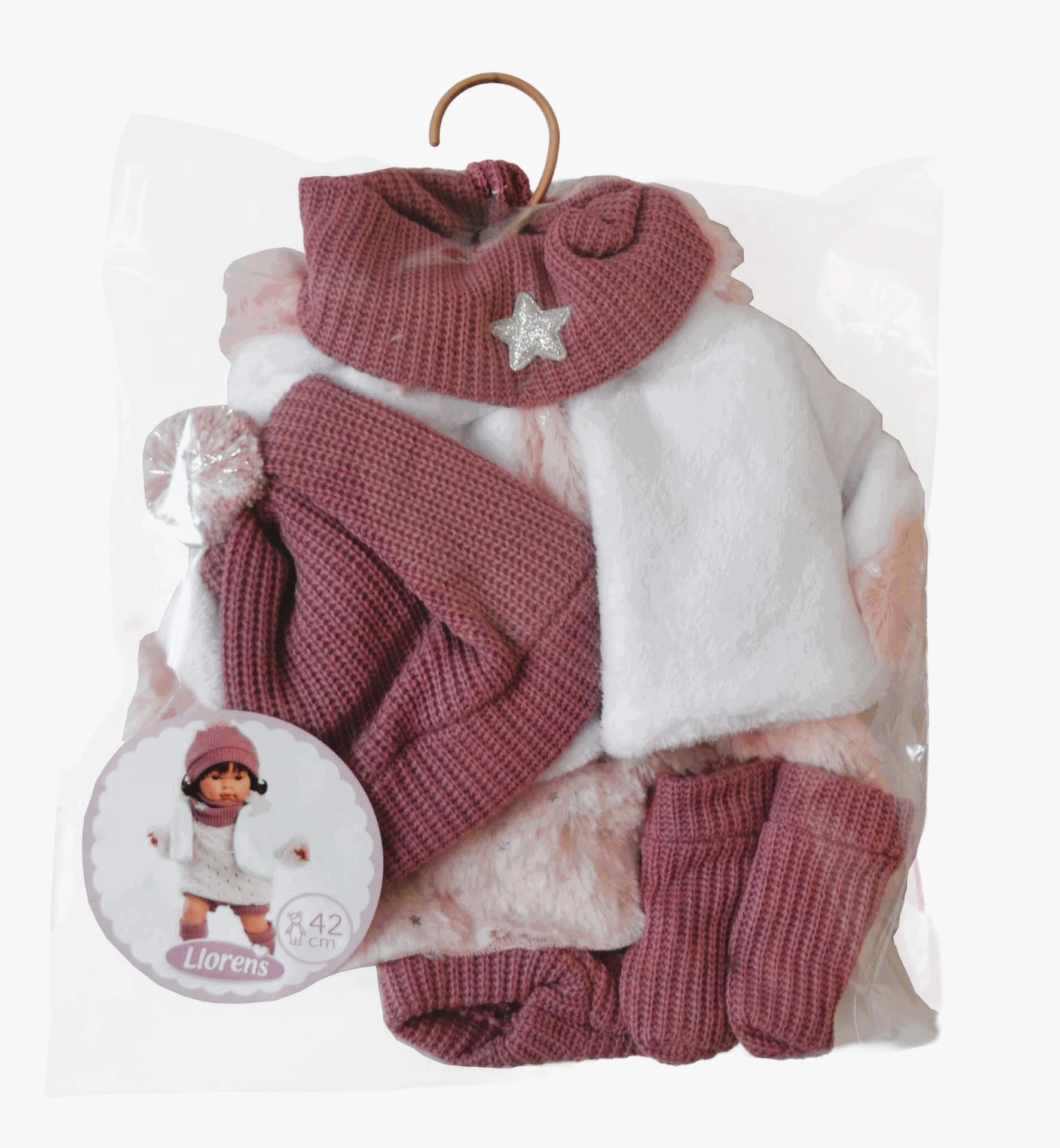 Adj új lendületet Llorens babádnak a teljes, 6 darabos ruhaszettel 42 cm-es mérethez. A puha és kötött anyagok kombinációja tökéletes a téli sétákhoz és a melengető ölelésekhez. Az átgondolt szabásnak köszönhetően a ruhák könnyen fel- és levehetők, támogatva a finommotorikát és a fantáziadús játékot.