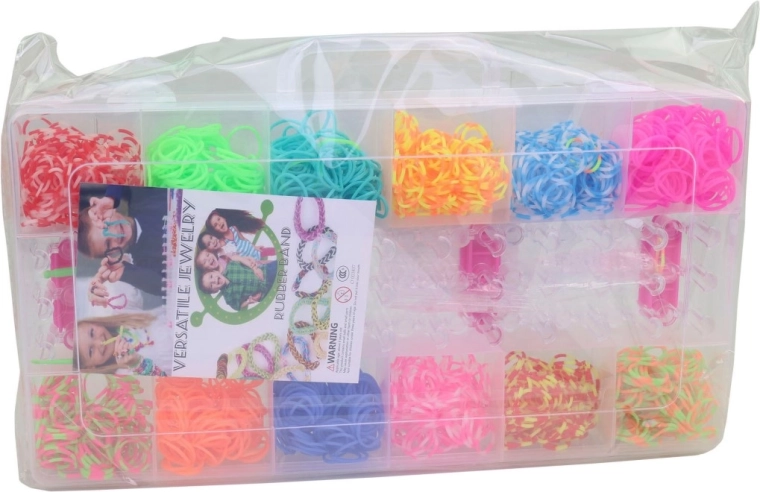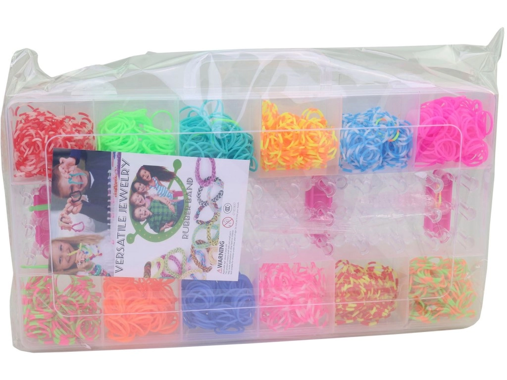 - 1400 db gumigyűrű élénk és feltűnő színekben a végtelen kombinációkért.