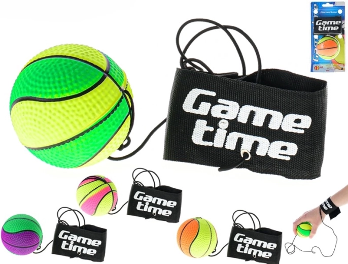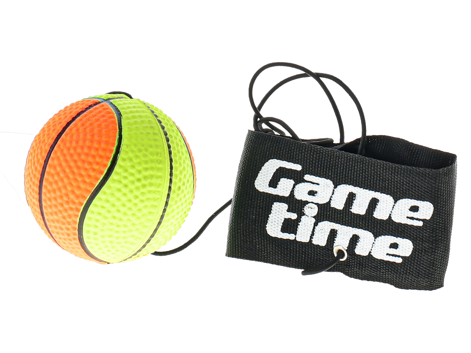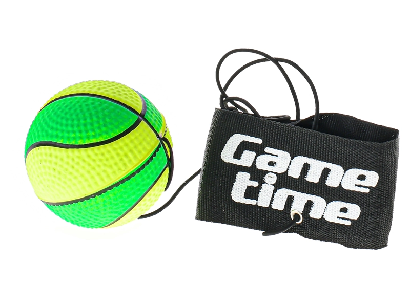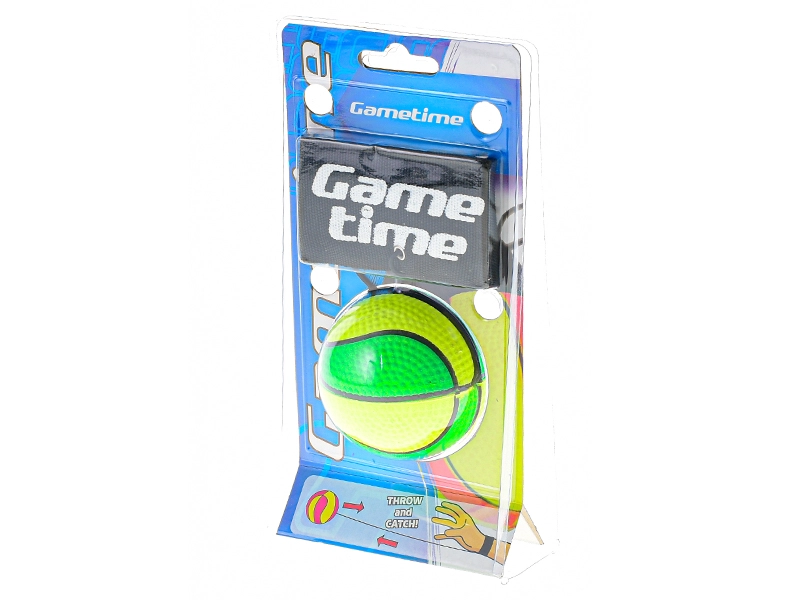 A Gametime szórakoztató és praktikus edzőlabdája 6 cm átmérővel rugalmas gumival van a tépőzáras, kényelmes pánthoz rögzítve. Kiválóan fejleszti a koordinációt, a reflexeket és a figyelmet. A texturált felületnek köszönhetően jól kézben tartható és nem csúszik, az elasztikus zsinór végtelen ismétlést tesz lehetővé a labda elvesztése nélkül, a állítható pántot pedig könnyen a kézre vagy a lábra rögzítheti.