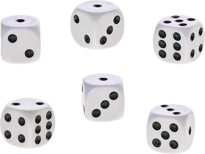A praktikus dobókocka-készlet ideális családi és társasjátékokhoz. A szabványos 16 mm-es méret kényelmes dobást és jól olvasható pontokat biztosít. A kompakt csomagolásnak köszönhetően a kockák könnyedén elférnek a zsebben vagy a hátizsákban, így tökéletesek utazáshoz.