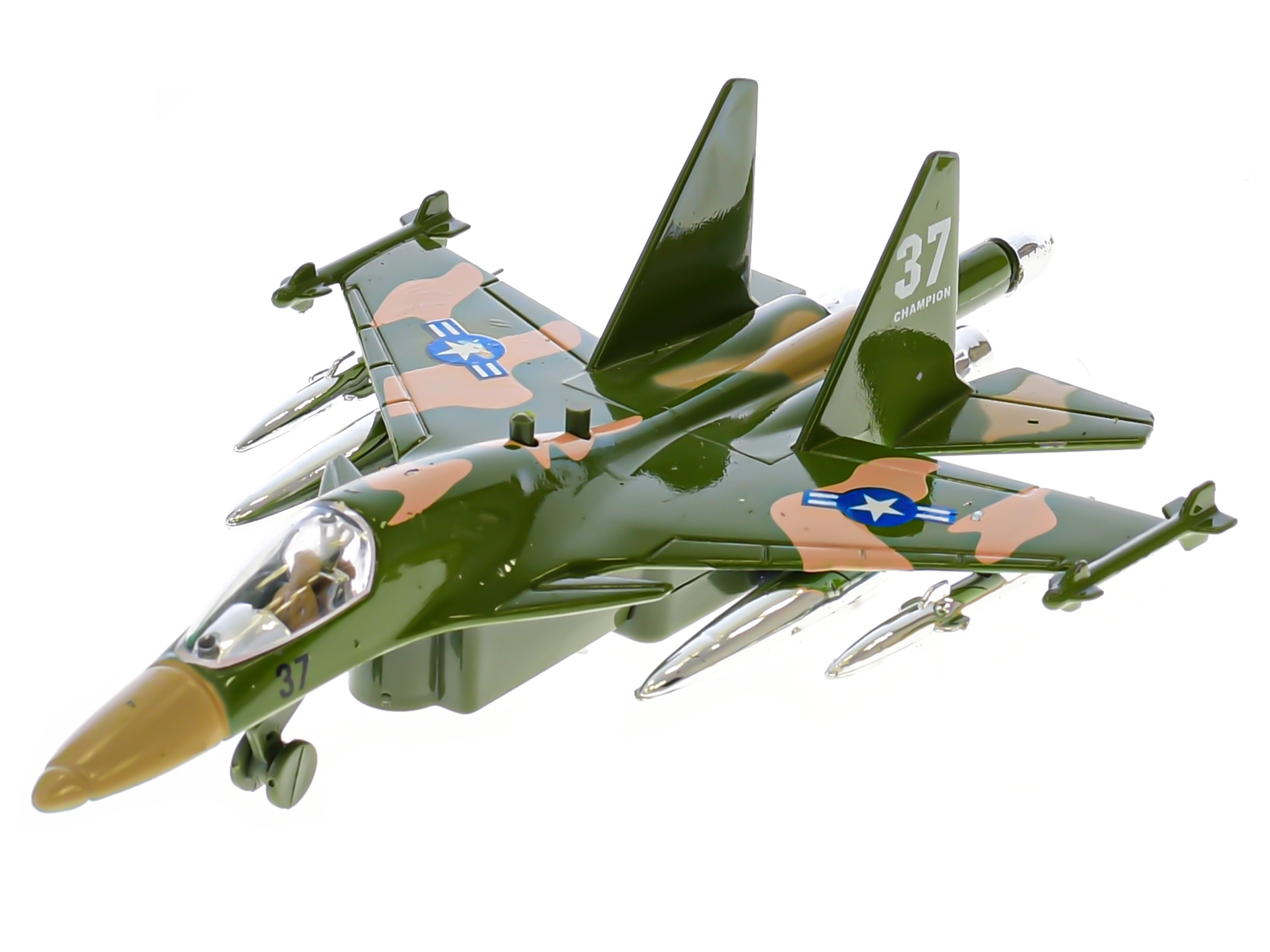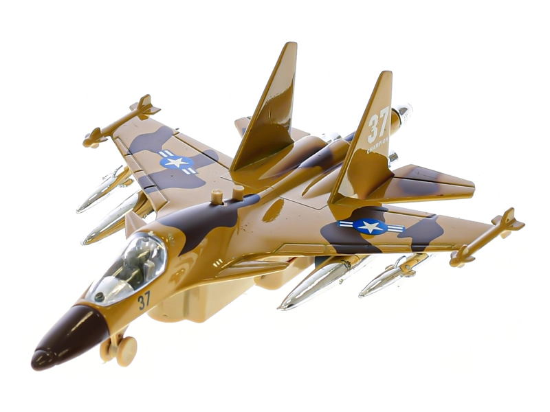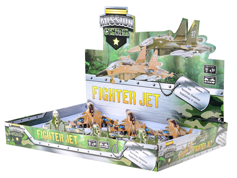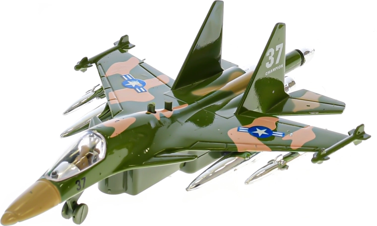 Ez a részletgazdag katonai repülő ideális a kis repülésrajongóknak. Elég hátrahúzni és elengedni, és a visszahúzós mechanizmusnak köszönhetően úgy indul, mint egy igazi gép. Gombnyomásra a repülő villog, és indítási hangot ad ki, fokozva a játékélményt.