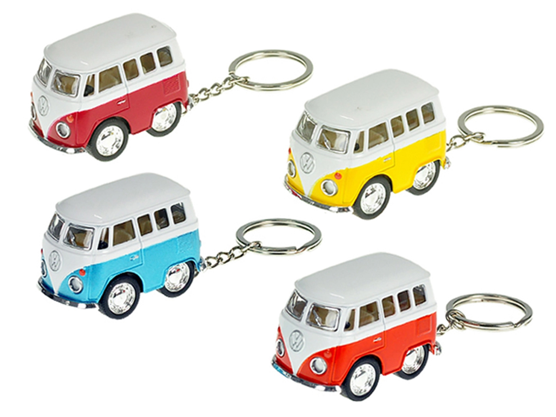 Stílusos kulcstartó az ikonikus Volkswagen mikrobusz formájában, amely örömet szerez gyerekeknek és felnőtteknek egyaránt. A részletgazdag, 5 cm hosszú modell strapabíró fémet és műanyagot kombinál, és a visszafutó mechanizmusnak köszönhetően felhúzás után magától előre gurul. Elérhető négy színben – piros, kék, sárga és narancssárga.