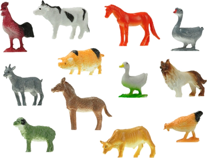 Ez a színes készlet kedvelt farmállatokat tartalmaz – például kutyát, lovat, tehenet, szamarat és másokat. A kisebb méretnek köszönhetően a figurák kényelmesen illeszkednek a gyermeki kézbe, és alkalmasak önálló vagy csoportos játékra.