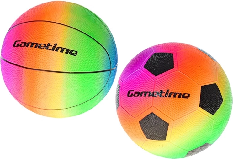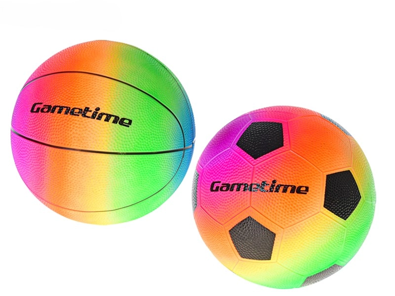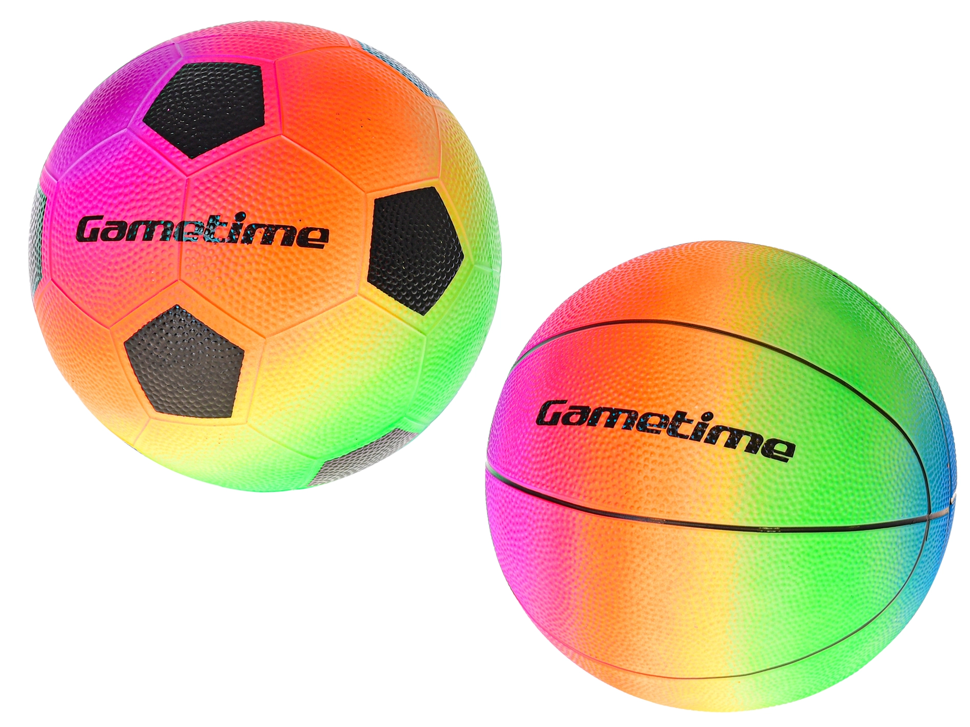 Válassz a szivárványos kivitelű kosárlabda és futball labda közül – tökéletes szabadtéri, illetve vízparti, vízi játékokra is.