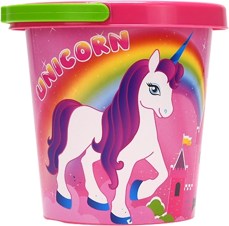 Aranyos vödör unikornis mintával, ideális a kis felfedezőknek 10 hónapos kortól. Remekül használható homokozóban és vízparton is – víz, homok és sár hordására. A 14 cm-es kompakt méret pont jó a gyerekkezekbe, és támogatja a finommotorika fejlesztését és a kreatív szabadtéri játékot.