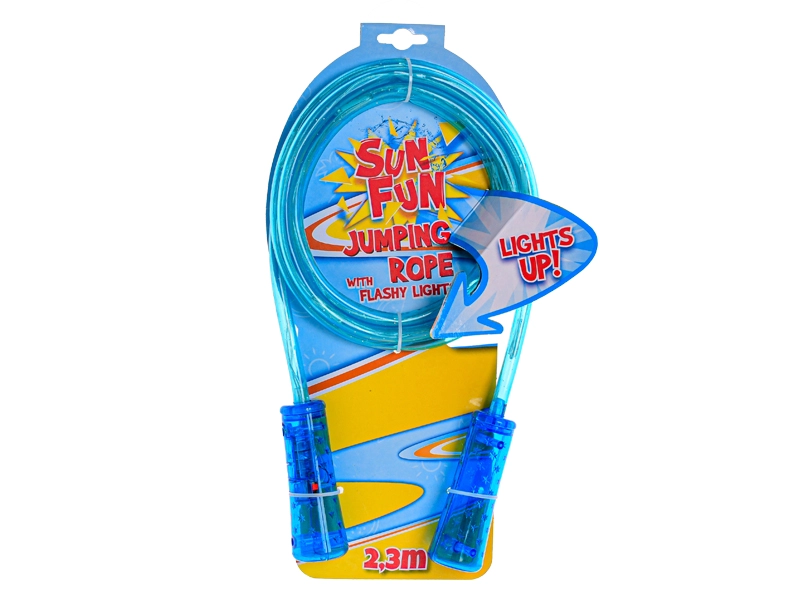 Világíts rá minden ugrásra! A Sun Fun gyerek ugrókötél LED világítással a hétköznapi ugrálást szórakoztató fényshow-vá varázsolja. Könnyű kialakításának, ergonomikus markolatainak és egyenletes forgásának köszönhetően ideális a koordináció, az ügyesség és a fittség fejlesztésére 4 éves kortól.