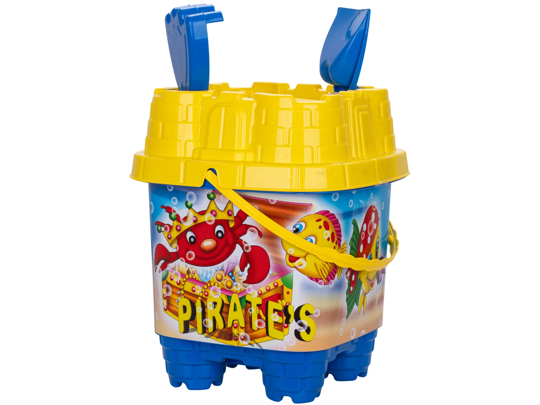 Ezzel a négyrészes homokozó készlettel a gyerekek rengeteg játékot élvezhetnek a homokozóban és a strandon is. A tengeri motívumokkal díszített vödör és a praktikus kiegészítők ösztönzik a fantáziát, és segítenek formák, homoksütik és első építmények készítésében. A minőségi kivitelezésnek köszönhetően a készlet alkalmas a mindennapi szabadtéri játékra.