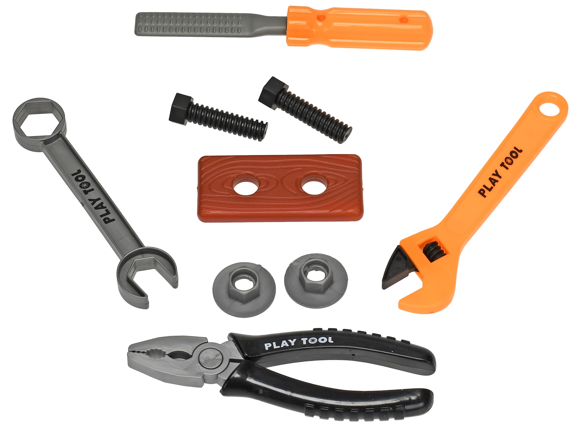 Ez a gyermek szerszámkészlet ideális a kis építőknek, akik szeretnék utánozni a felnőtteket, és játékos formában új készségeket tanulni. A kilencdarabos készlet alapvető eszközöket tartalmaz egyszerű otthoni „javításokhoz” és alkotáshoz.