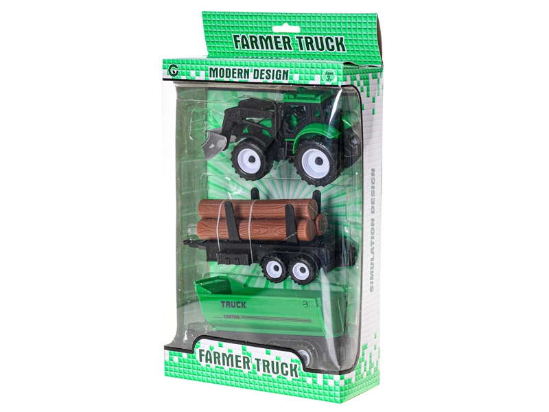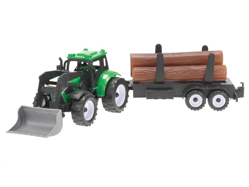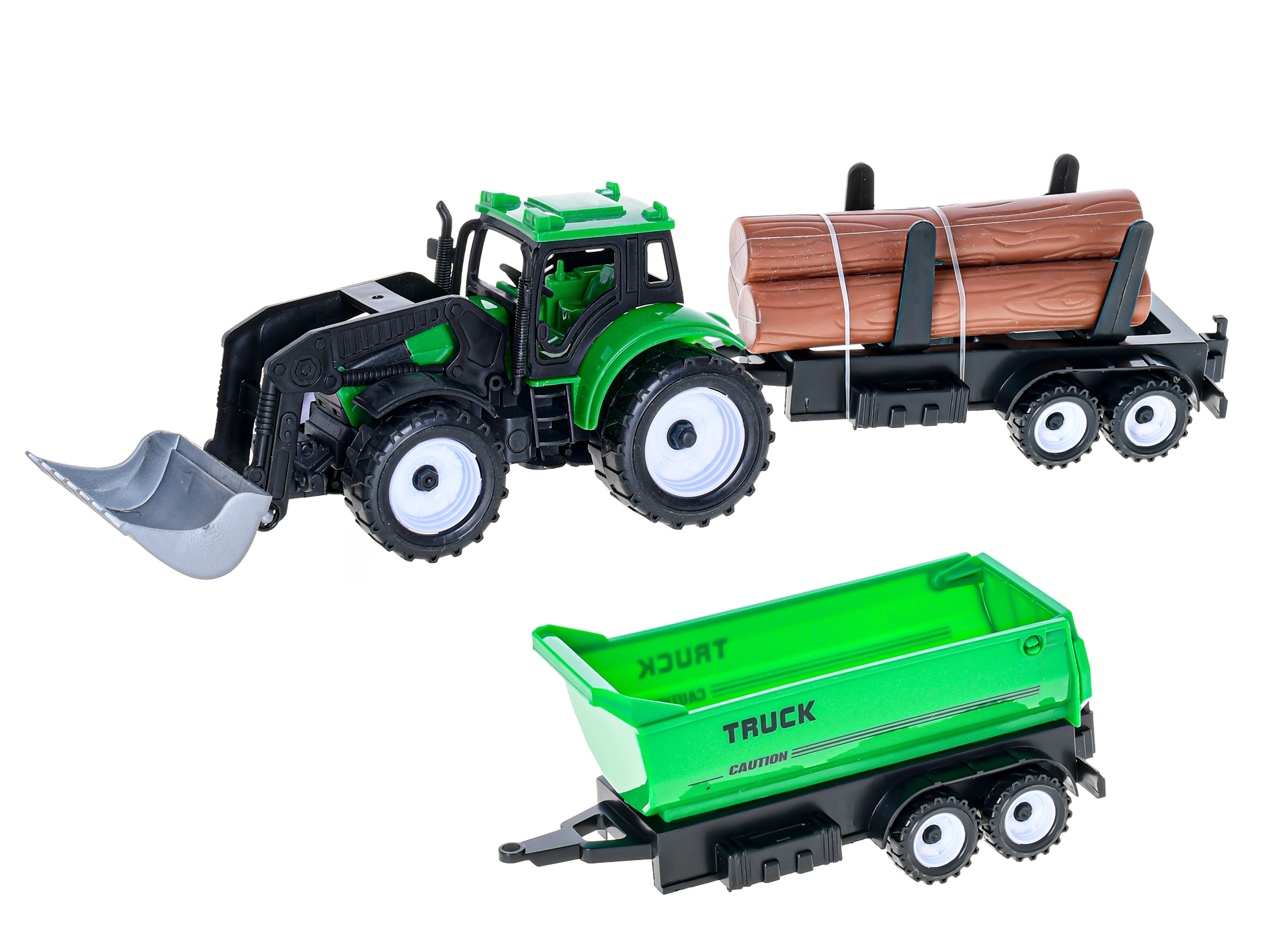 Fedezd fel a vidéki szórakozást a részletgazdag rakodós traktorral, amely a lendkeréknek köszönhetően simán és hosszan gurul. Két cserélhető pótkocsi – rönkszállító platós és billenő – bővíti a játék lehetőségeit a rakodástól a teher kiborításáig.