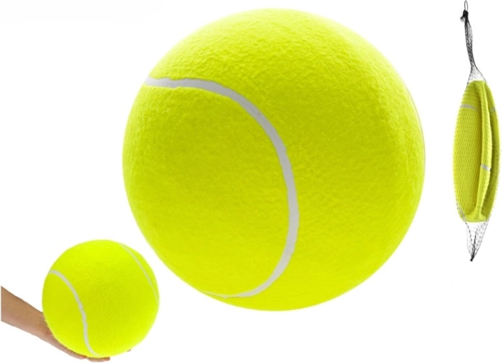 Szórakozás otthon és kint: ez a 24 cm átmérőjű óriás teniszlabda minden izgő-mozgó gyereknek örömet okoz. Puha felületének, feltűnő neonszínének és praktikus hálós csomagolásának köszönhetően ideális dobáláshoz, elkapáshoz és közös játékhoz az udvaron vagy a gyerekszobában.