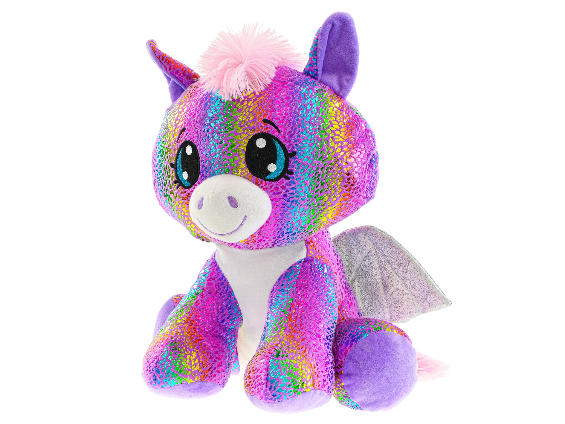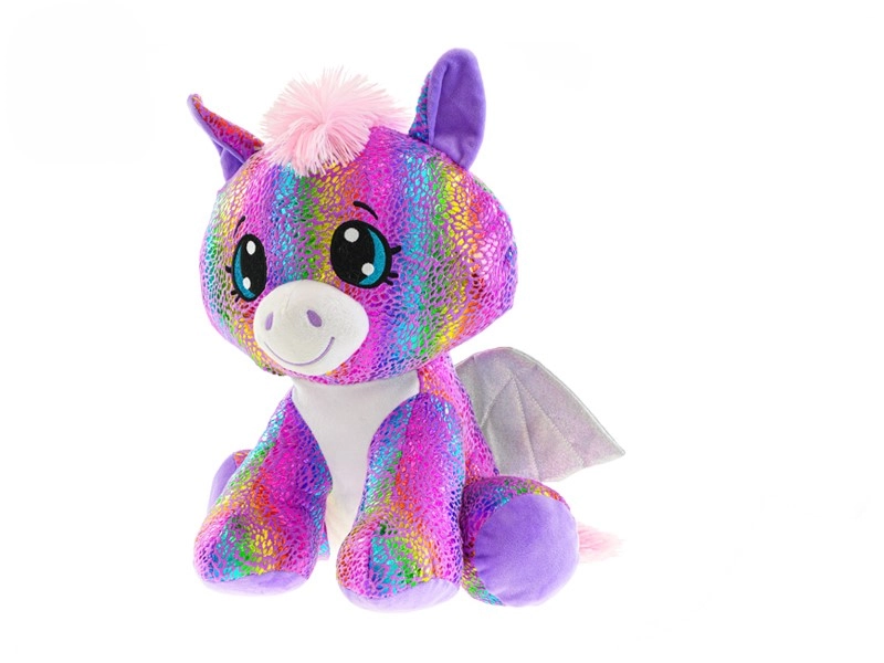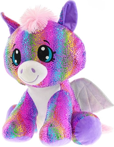 A 24 cm magas, ülő pozíciójú, bájos plüss pegazust a gyerekek első pillantásra megszeretik. Pihe-puha teste, szivárványos, csillogó dizájnja és barátságos arckifejezése ölelgetésre és fantáziadús játékra hív.