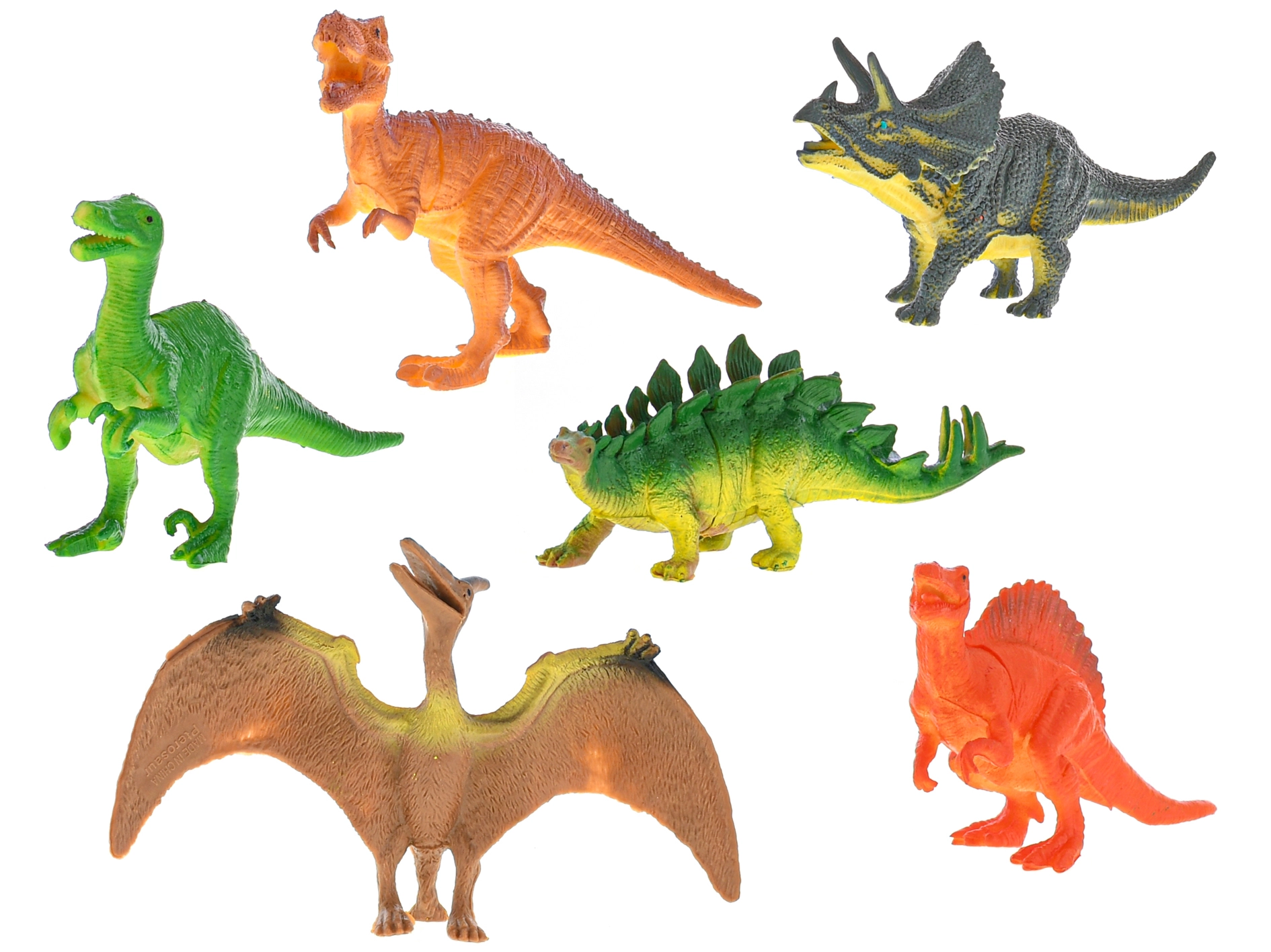 Ez a színes dinoszaurusz készlet hat különböző figurát kínál feltűnő textúrával és realisztikus részletekkel. A kiegészítők bővítik a játék lehetőségeit, és inspirálják a gyerekeket, hogy saját őskori történeteket alkossanak. A tartós műanyag könnyen tisztítható, és ideális a mindennapos játékhoz otthon és utazás közben is.