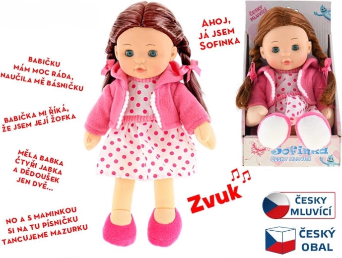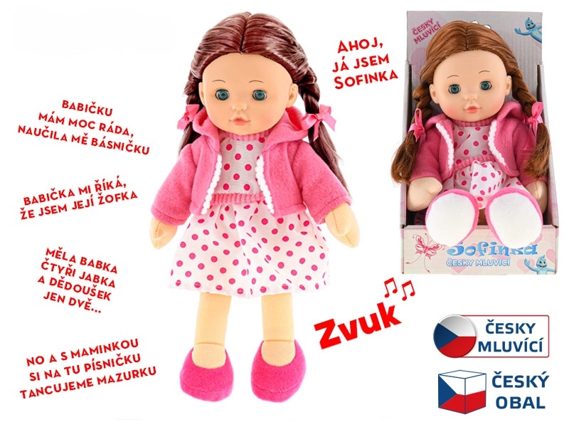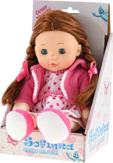 Szofi baba ideális társ 3 éves kortól. Puha teste kellemes tapintású és ölelgetésre hív, míg a valósághű megjelenés barna hajjal és pislogó szemekkel serkenti a gyermeki fantáziát. Szofi ráadásul magyarul beszél, ami játékos formában fejleszti a kommunikációt és az empátiát.