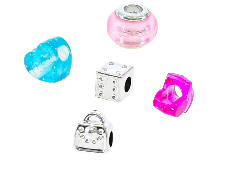 A nagy átfűzőnyílással rendelkező gyöngyök és medálok lehetővé teszik, hogy a gyerekek gyorsan változtassák a karkötő megjelenését, és felnőttek segítsége nélkül alkossanak egyedi kombinációkat.