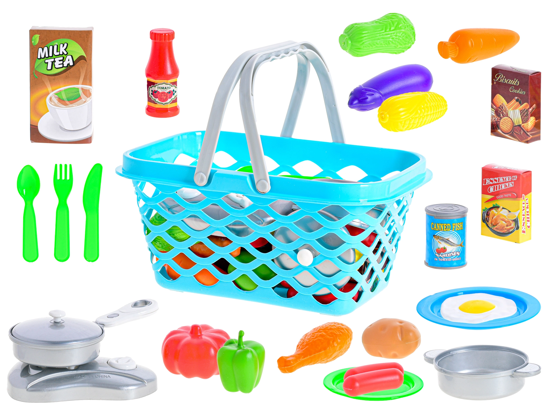 Szórakoztató gyermek konyhai szett bevásárlókosárral, amely mindent kínál a főzős és vásárlós szerepjátékhoz. A csomagban főzőlap, fazék, serpenyő, evőeszközök, tányérok és különféle élelmiszerek találhatók. A könnyű és strapabíró műanyag ideális a kis kezeknek, a kosár megkönnyíti a tárolást és a hordozást. Két színben érhető el – sárga és kék. 3 éves kortól ajánlott.