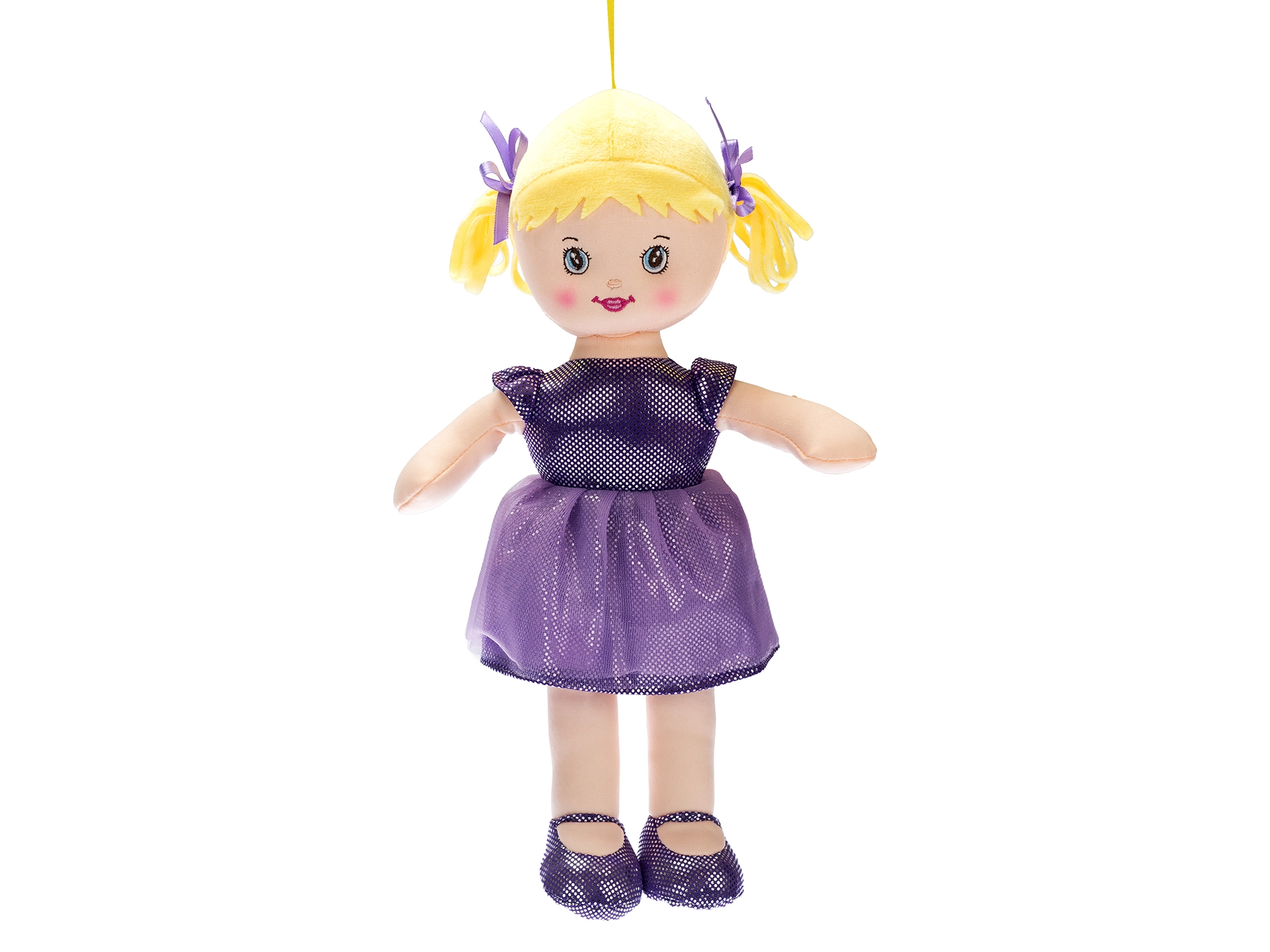 A bájos, lila ruhácskás Viktorka rongybaba minden kisbabát és totyogót megörvendeztet. Kellemesen puha, könnyű a kis kézben tartani, és magyarul tud beszélni és énekelni egy közkedvelt dalt. 32 cm-es mérete ideális ölelgetéshez és az első játékokhoz, újszülött kortól ajánlott.