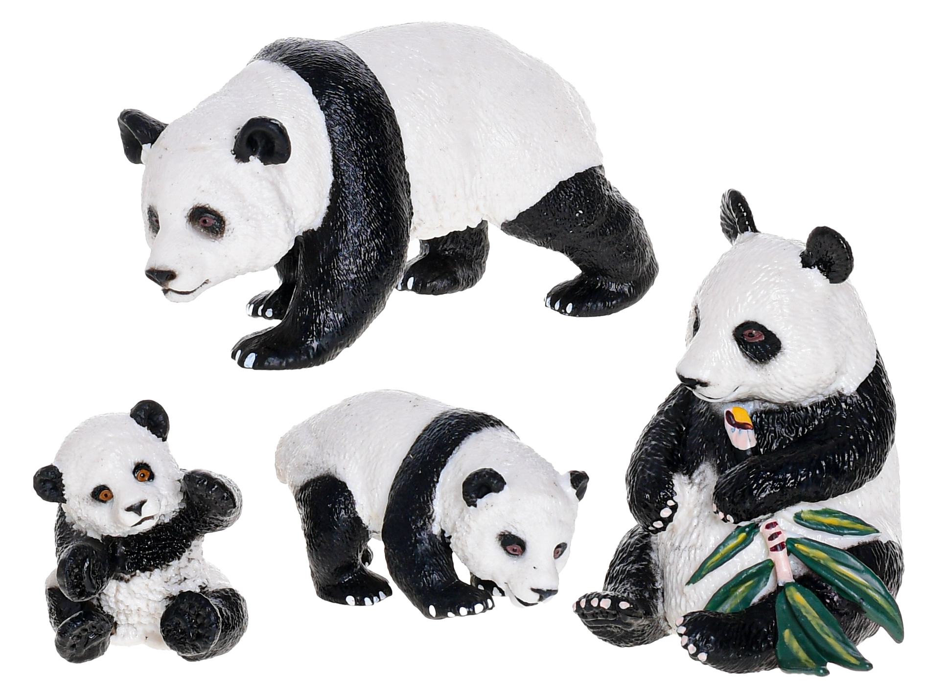 - hím és nőstény panda figurák kölykökkel