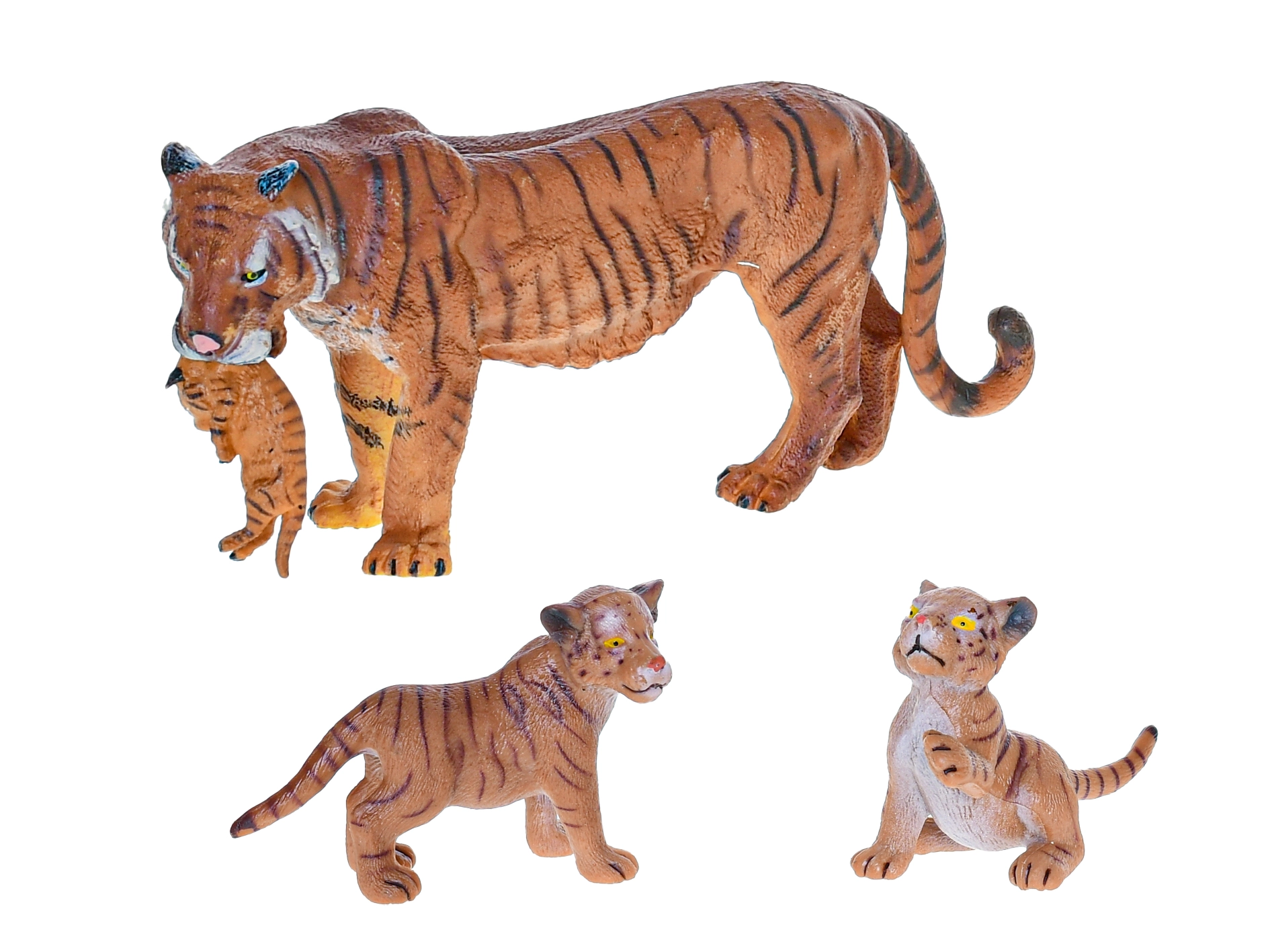 - Realista kidolgozás: részletes műanyag figurák tigrisanyával és kölykökkel.