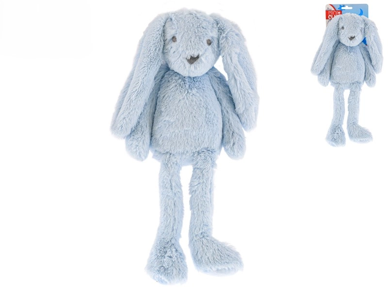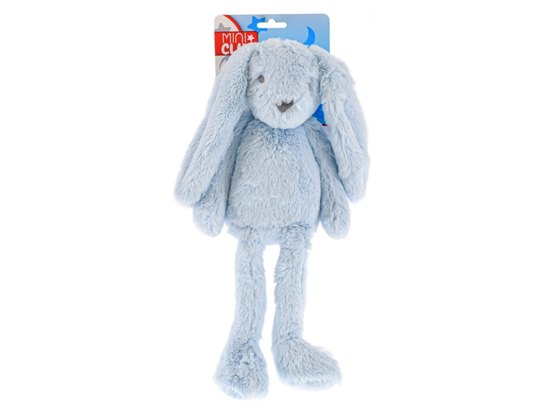 A bájos, kék színű Mini Club plüss nyuszi puha társa a csecsemőknek és totyogóknak. 30 cm-es magasságának és hosszú lábainak köszönhetően könnyen megfogható az apró kezekkel is. Lágy, 100% poliészterből készült, rendelkezik Oeko‑Tex Standard 100 tanúsítvánnyal, és születéstől fogva alkalmas. A puhaság megőrzése érdekében kézi mosás ajánlott.