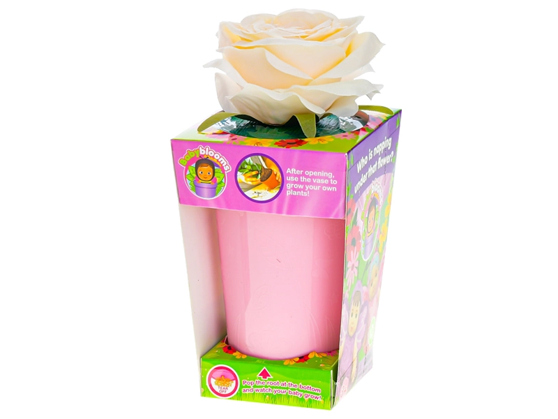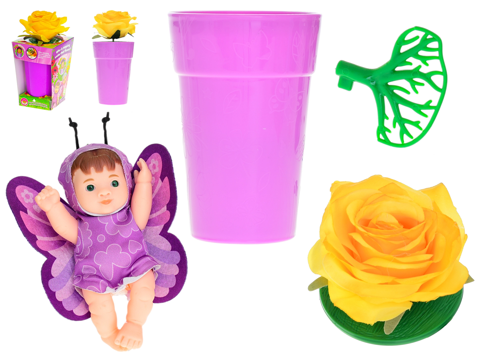 A Babyblooms Mimibaba felfedezésre hív – látványos virágcserépben bújik meg, amely egyedi csomagolás és dekoráció is egyben. Az alján lévő kulccsal kinyitva kedves meglepetés tárul fel: a baba kiegészítőkkel, köztük karkötővel és virággal. Kompakt, 12,5 cm-es méretének köszönhetően remek útitárs és mindennapi játék.