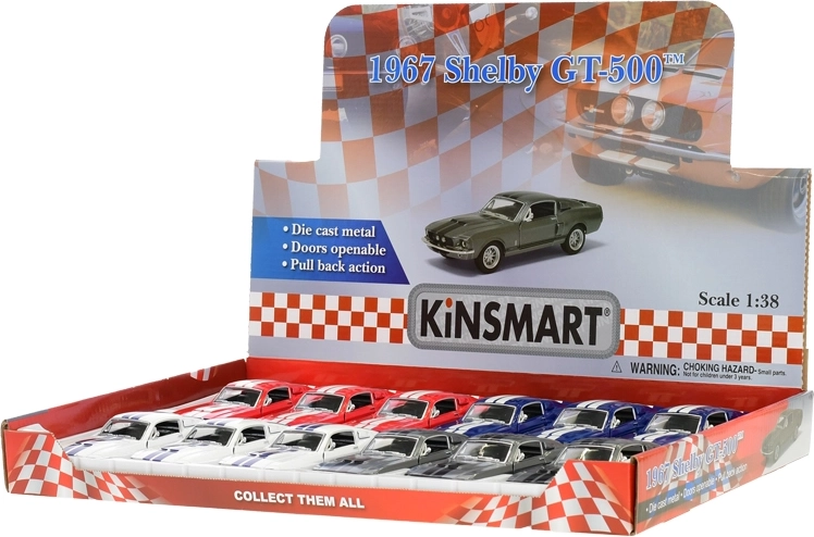 Fedezze fel az ikonikus amerikai izomautót zsebméretben. Ez a 1967-es FORD SHELBY GT500 fém modell 1:38 méretarányban hűen adja vissza a klasszikus sportos vonalait és karakterét, amely világszerte rajongók szívét hódította meg. A nyitható ajtóknak köszönhetően bepillanthat a belső térbe, a pull-back mechanizmus pedig lendületes előrehaladást biztosít egyszerű visszahúzás után.