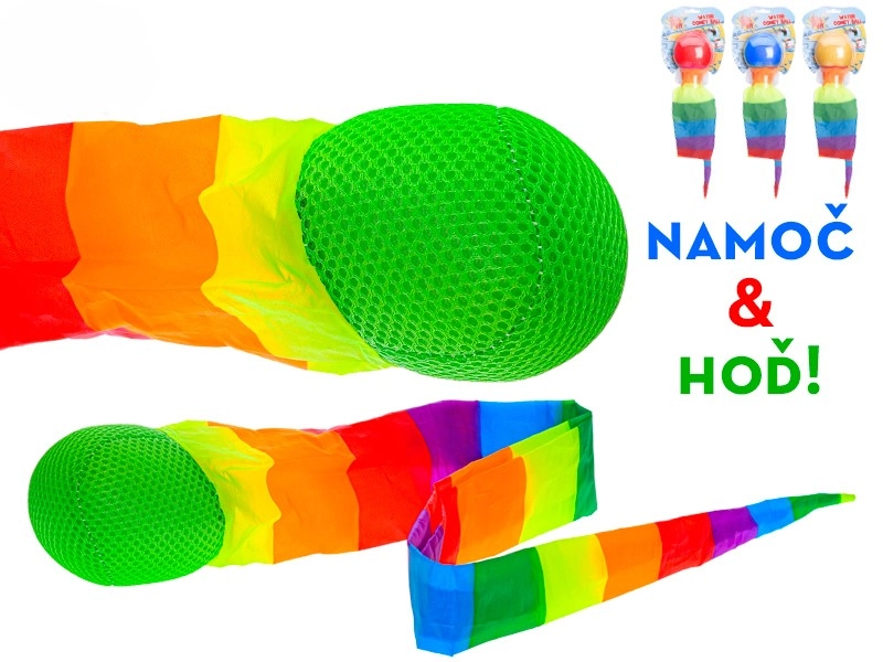 Élvezd a nyarat a vízparton a játékos újdonsággal – vizes labda szivárványos szalaggal. Csak merítsd vízbe, hagyd, hogy megszívja magát, és dobd el – a labda mögött kibomlik a szivárványos szalag, amely látványos vizuális effektust kelt és játékra hív. Könnyű kialakítás, egyszerű kezelhetőség és szórakozás 3 éves kortól.
