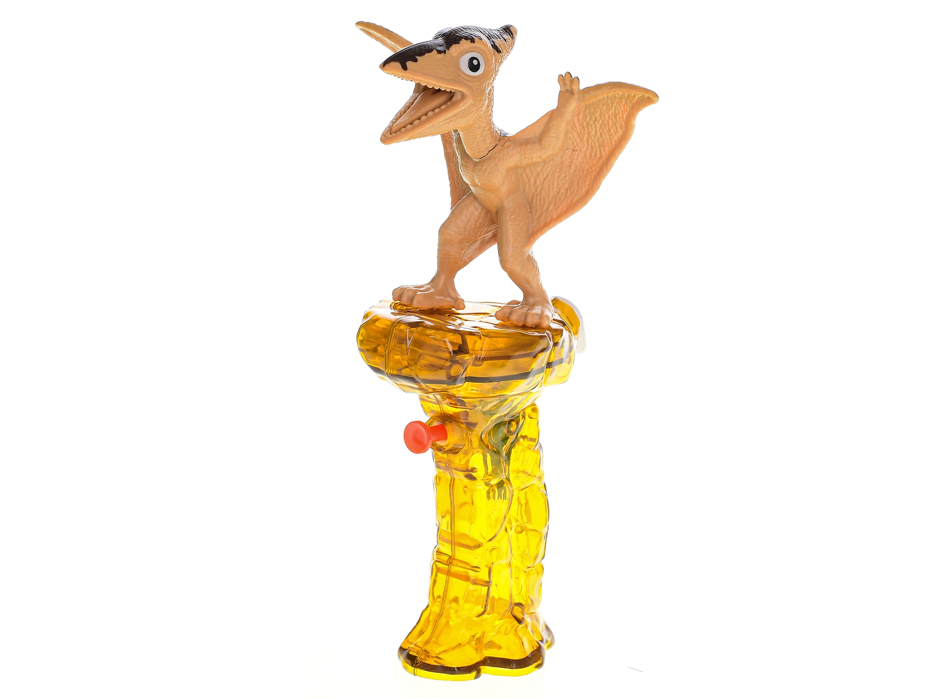 A prehisztorikus pterodaktilusz alakú, vidám vízipisztoly örömet szerez a kis vízi harcosoknak és a dinoszauruszrajongóknak egyaránt. A átlátszó tartálynak köszönhetően könnyen feltölthető, a gomb megnyomására pedig a szájából erős vízsugár lövell ki. A könnyű műanyag kialakítás és a könnyű kezelhetőség a kis kezek számára ideális játékká teszi a kertbe, a medencéhez és a strandra is.