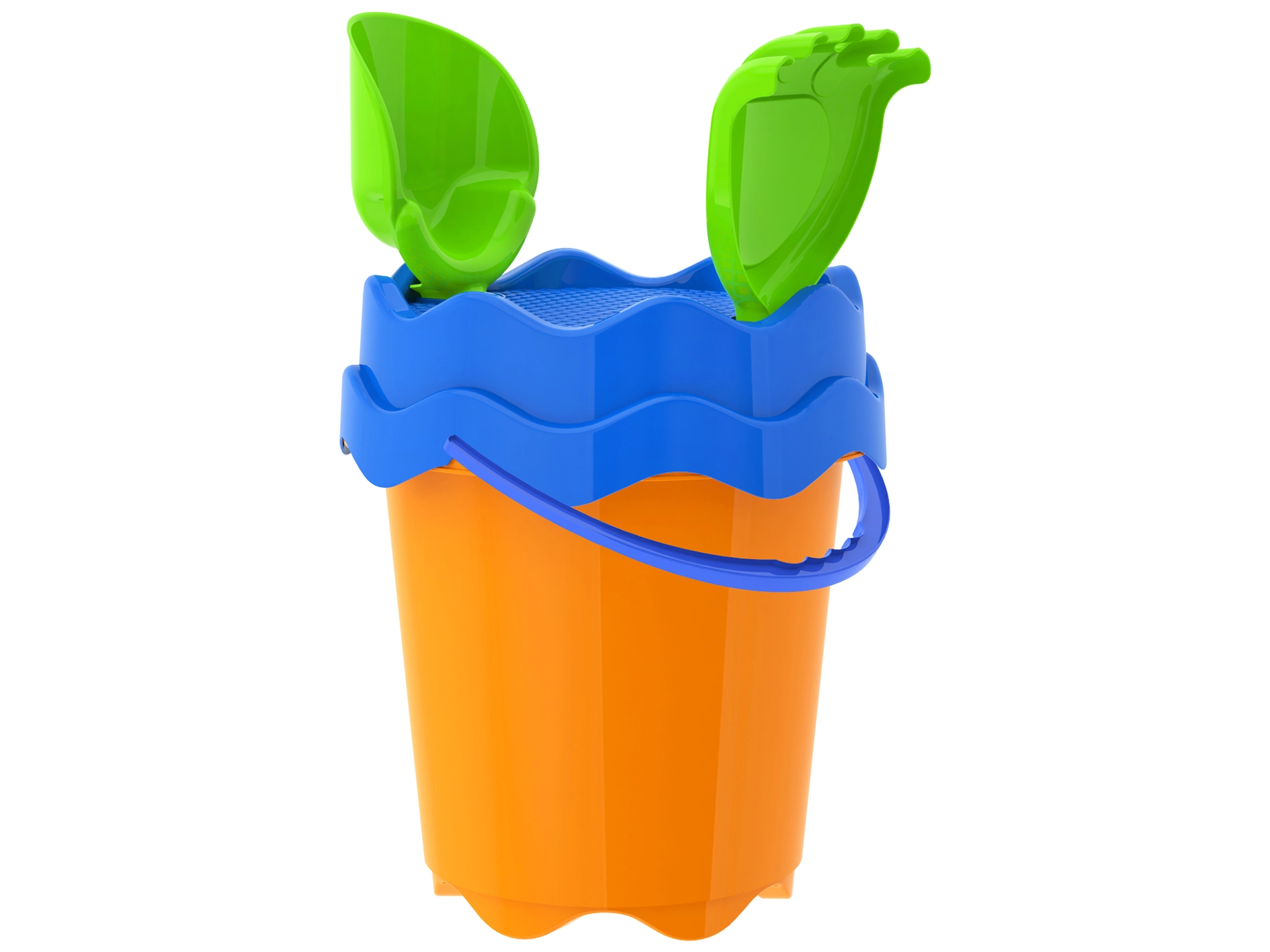 A szett mindent tartalmaz, ami a szabadban való mókához szükséges – a 17 cm átmérőjű vödörtől a praktikus szitáig. A figyelemfelkeltő narancssárga szín motivál a hosszabb játékra. A hálós csomagolás megkönnyíti a szárítást, a hordozást és a játékok elpakolását a játék végén.