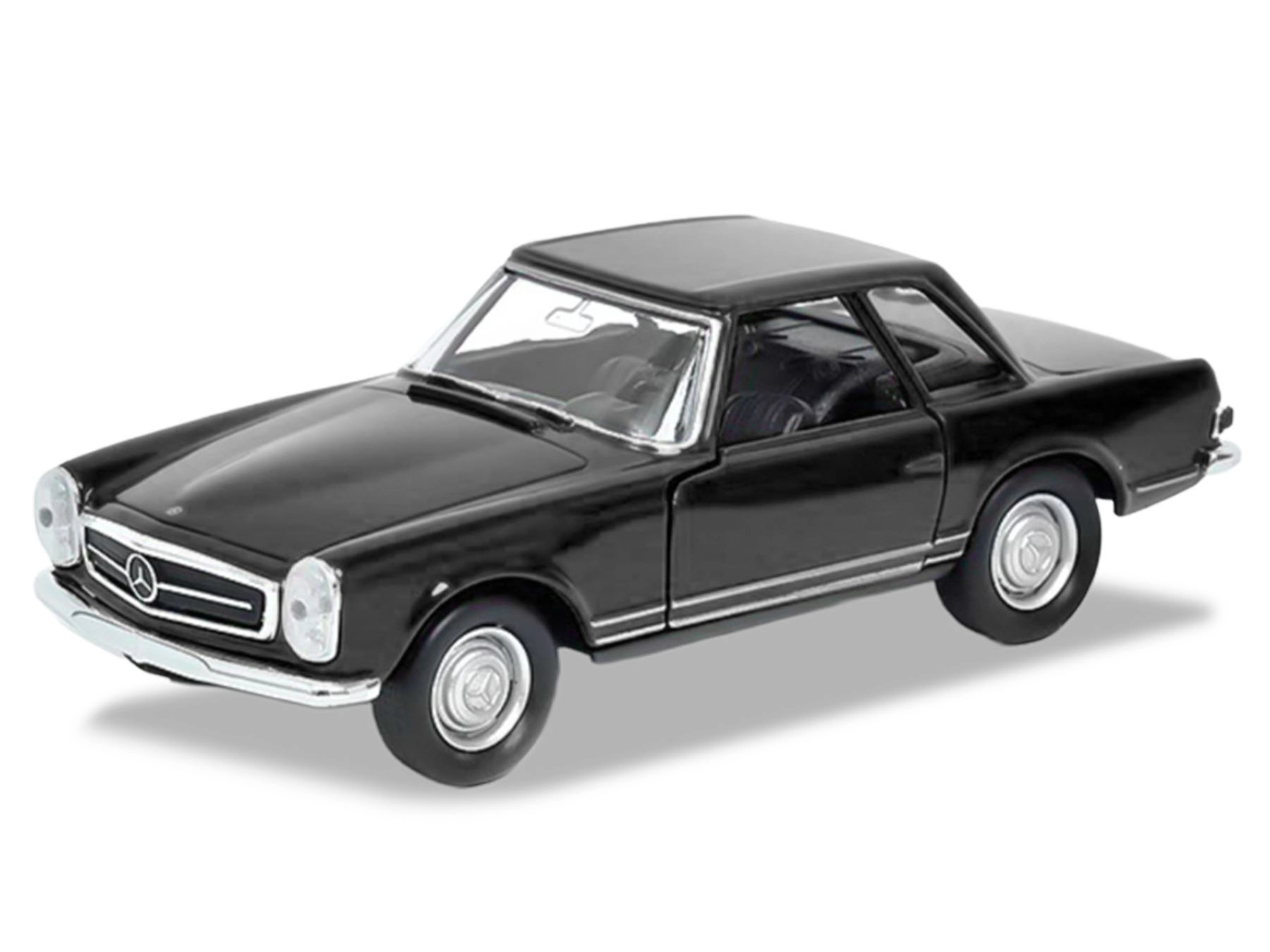 Részletgazdagon kidolgozott, legendás MERCEDES-BENZ 230 SL (1963) fém modell a Welly márkától 1:34–39 méretarányban, valósághű kivitelben, nyitható oldalsó ajtókkal és felhúzós (pull-back) meghajtással. A fém és minőségi műanyag kombinációja tartósságot és vonzó megjelenést biztosít. Hossza 12 cm, ideális gyűjtőknek és 3 éves kortól gyermekeknek, elérhető piros, fehér és fekete színben.