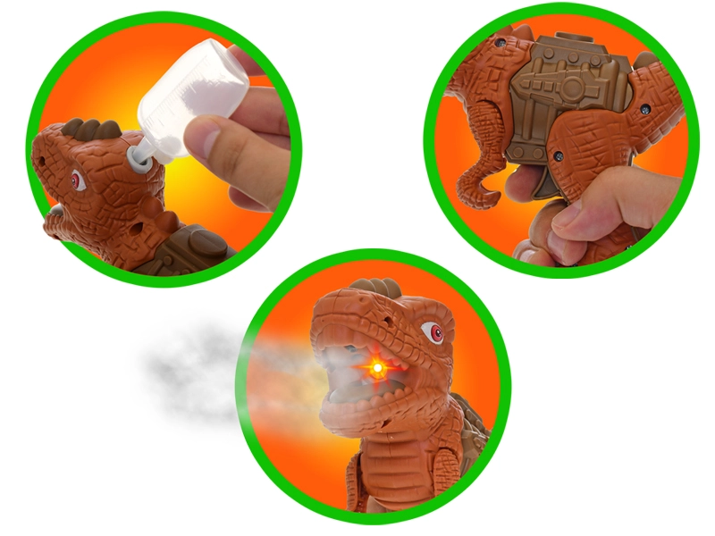 A játék két színben – narancssárga és zöld – érhető el, így minden kis felfedező könnyen kiválaszthatja a saját dinoszauruszát. A kompakt méreteknek köszönhetően utazáshoz és otthoni játékhoz egyaránt kiváló. Működéséhez 2× AA elem szükséges (nem tartozék), a csomagban pedig található egy utántöltő víztartály is.