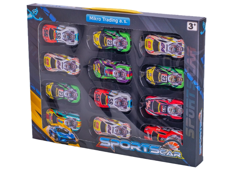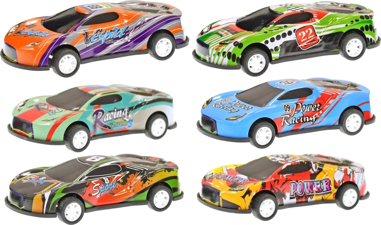 A 8,5 cm hosszú, szórakoztató versenyautó-készlet örömet okoz a kis autórajongóknak. Minden modell tartós fém és műanyag kombinációjából készült, és visszahúzós mechanizmussal rendelkezik a gyors előrerajthoz. A csomag 12 színes autót tartalmaz, amelyek támogatják a finommotorika fejlődését, a képzeletet és a versenyszellemet. 3 éves kortól ajánlott.