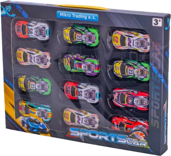 A csomag 12 különböző színű modellt kínál, ideális saját versenyek rendezéséhez otthon és útközben is. A 35 × 3 × 27 cm méretű kompakt doboz megkönnyíti a tárolást és a szállítást. A játék megfelel a hatályos biztonsági előírásoknak, és 3 éves kortól ajánlott.