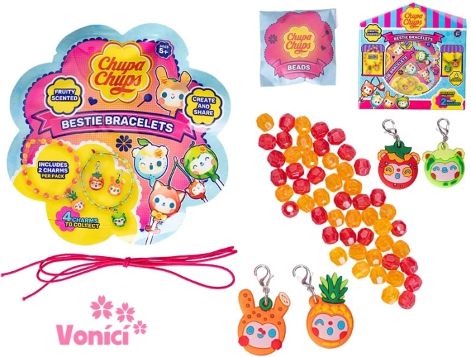 A CHUPA CHUPS illatos barátságkarkötők tökéletes választás azoknak a kis alkotóknak, akik szeretnek színeket, medálokat és illatokat kombinálni. A könnyű műanyag anyagnak köszönhetően egész nap kényelmes viselet, egyszerű kialakítása pedig a kisebb gyerekek számára is könnyű összeállítást tesz lehetővé.