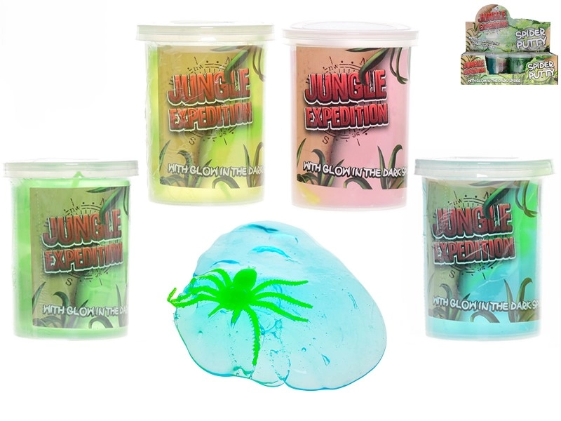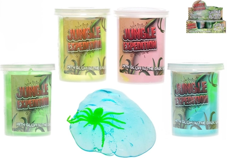 A Jungle Expedition világító nyálka pókkal remek választás a kis felfedezőknek. A színes masszában egy kis pók rejtőzik, amely fény felvétele után a sötétben világít, titokzatos hangulatot adva a játéknak. A kompakt, átlátszó pohárnak köszönhetően a nyálka könnyen hordozható, és mindig készen áll a játékra otthon és útközben is.