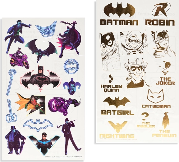 Keltsétek életre a gyerekek fantáziáját a DC világából inspirált ideiglenes tetoválásokkal. Két ív színes, képregényes motívum órákon át tartó szórakozást kínál, egyszerű használattal és rendetlenség nélkül – csak víz és néhány másodperc enyhe nyomás szükséges.