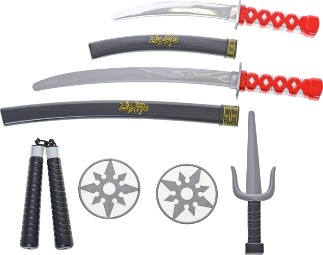 - 2× szamurájkard hüvellyel, 1× tőr, 1× nunchaku, 2× dobócsillag