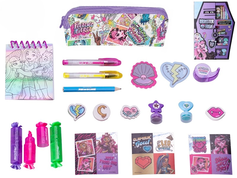- zsírkréták, filctollak, ceruzák, Monster High szereplős matricák