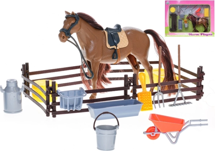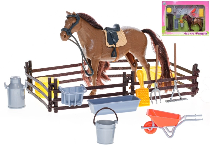 Kids Globe ló 18 cm állvánnyal és kiegészítőkkel
