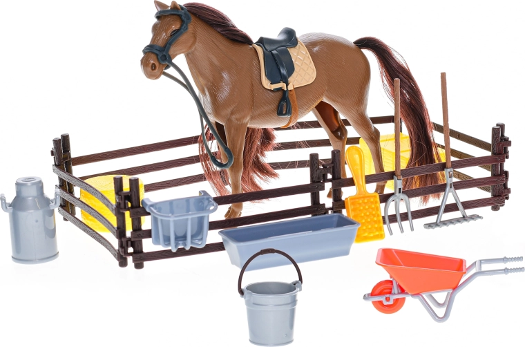 A szett támogatja a kreativitást, a szerepjátékot és a finommotorika fejlődését. A mellékelt kiegészítőknek köszönhetően könnyű saját istálló- vagy farmjeleneteket létrehozni. A praktikus dobozos csomagolás megkönnyíti a tárolást és rendben tartást.