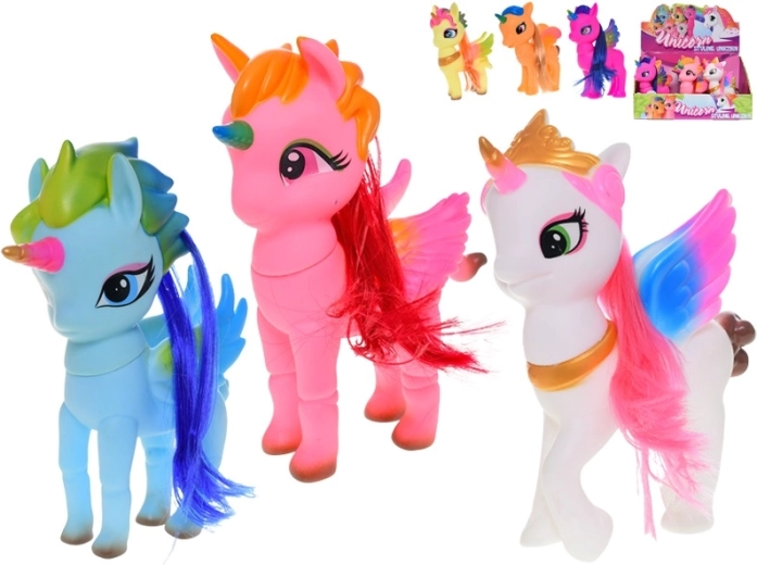 A 20 cm magas, aranyos egyszarvú figura lenyűgözi a gyerekeket és a szülőket színes kivitelével és részletgazdag kidolgozásával. 6 színben érhető el, strapabíró műanyagból készült, és kiválóan alkalmas játékra és dekorációnak a gyerekszobába. 3 éves kortól ajánlott.