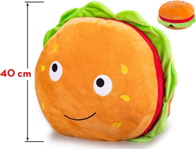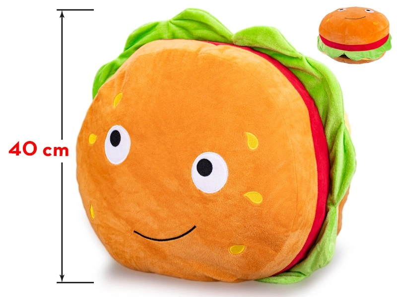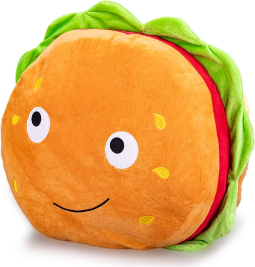 A mosolygós plüss hamburger ideális társ a mindennapi ölelgetéshez és a nyugodt alváshoz. A minőségi, selymes tapintású plüss gyengéd a bőrhöz, ugyanakkor kopásálló, így a játék hosszú távon is helytáll.