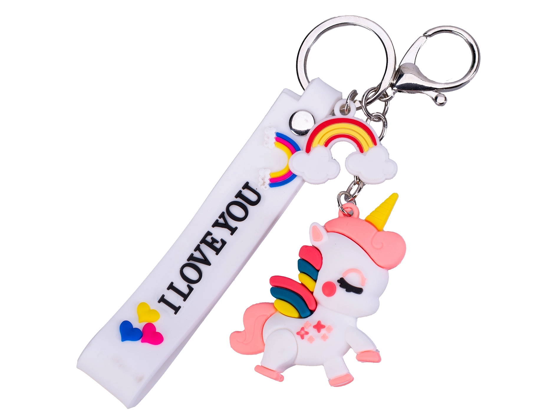 Aranyos egyszarvús kulcstartó, amely örömet szerez gyerekeknek és felnőtteknek egyaránt. Kínál élénk színeket, puha szilikon pántot I LOVE YOU felirattal és tartós fémkarikákat a könnyű rögzítéshez kulcsokra vagy táskára. Könnyű, mégis strapabíró kiegészítő rózsaszín, kék és fehér változatban.
