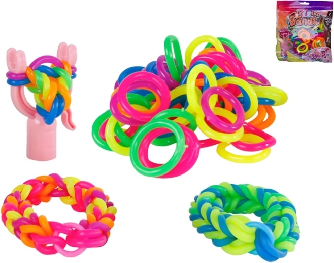 Ezzel a készlettel a gyerekek könnyedén készíthetnek színes karkötőket és más apró kiegészítőket. Az extra nagy gumik könnyebben megfoghatók, így a kisebb kezek számára is ideálisak. A minőségi műanyag hosszú élettartamot és biztonságos használatot biztosít. Kompakt méreteinek köszönhetően a készlet utazáshoz is ideális, és remek ajándék kis alkotóknak.
