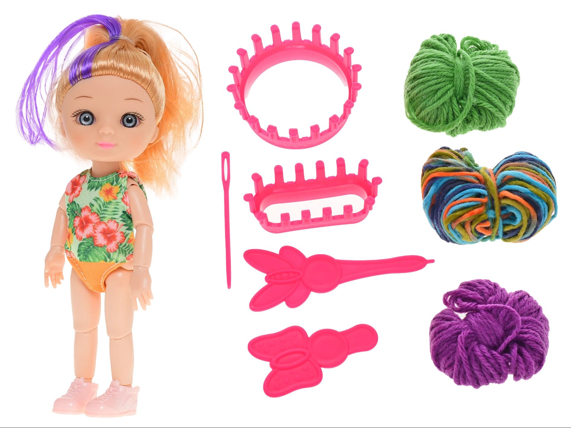 A 16 cm magas, aranyos baba teljes kötőkészlettel érkezik, amely segíti a gyerekeket a kreativitás, a finommotorika és a türelmet igénylő készségek fejlesztésében. Két változat közül választhat: szőke vagy barna, így könnyű kiválasztani a kedvenc stílust. Minőségi műanyagból készült, 3 éves kortól ajánlott.