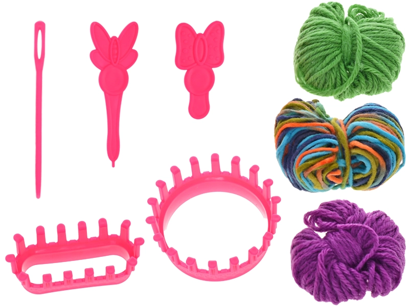 - Teljes felszerelés a csomagban – baba, kötőkeret és fonal.