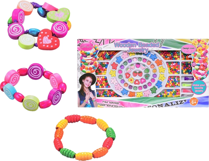 Támogasd a gyerekek fantáziáját és kézügyességét ezzel a praktikus dobozban tárolt fafűzhető gyöngyszettel. Különféle alakok és színek, köztük pillangók és virágok segítségével egyedi karkötők, nyakláncok és medálok készíthetők. A játék fejleszti a finommotorikát, a szem–kéz koordinációt és a türelmet, és 6 éves kortól ajánlott. Megfelel az európai biztonsági szabványoknak.