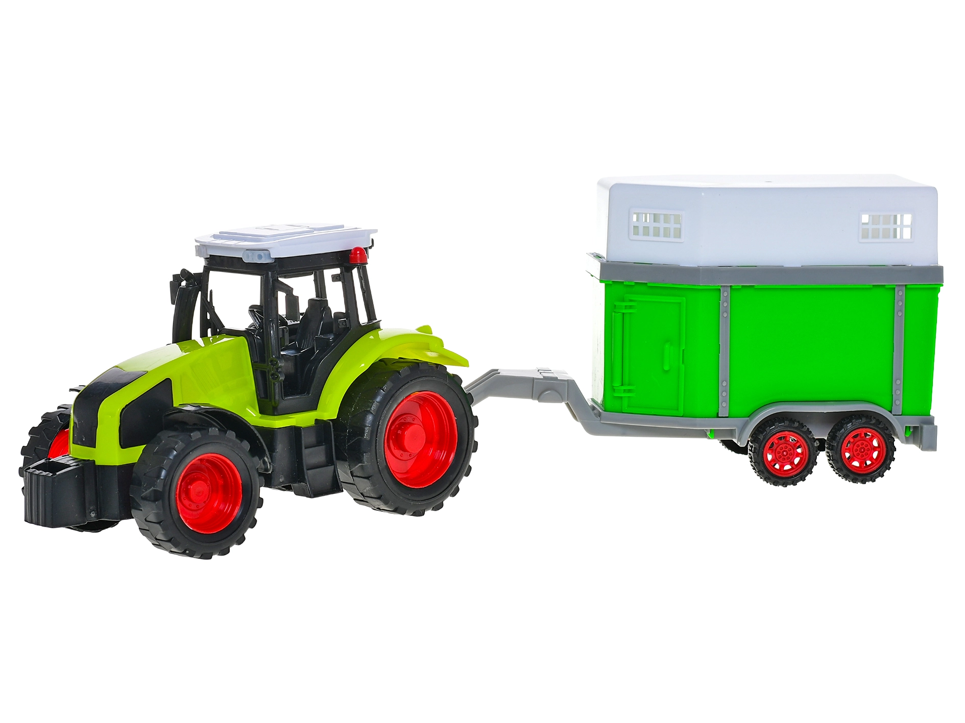 Olyan játékot keres, amely hosszú órákra lefoglalja a kis gazdákat? Ez a lószállító utánfutós traktor lendkerekes meghajtásának köszönhetően realisztikus haladást, strapabíró, minőségi műanyag kivitelezést és praktikus, 36 cm-es hosszt kínál a könnyű kezelhetőséghez. Remek ajándékötlet – dobozban csomagolva.
